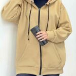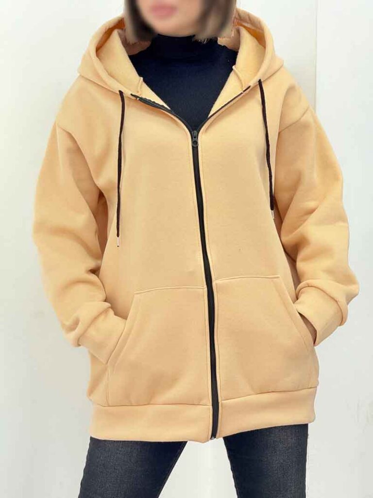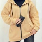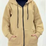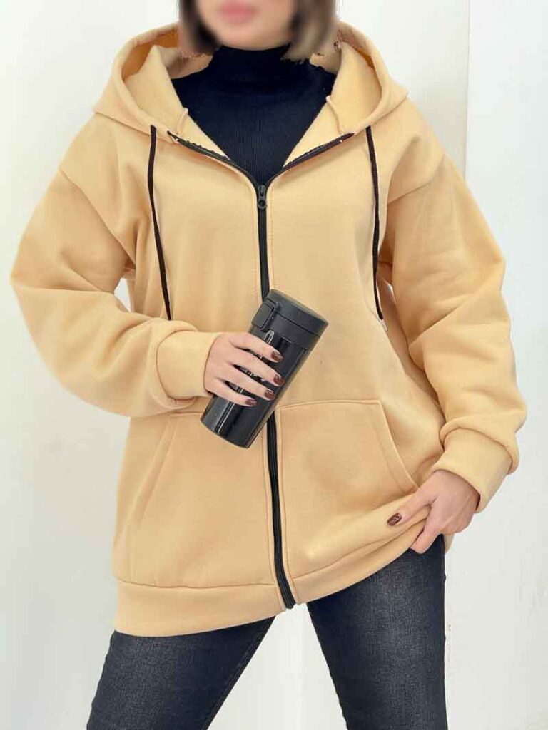 سوییشرت زیپ دار رنگ کرم تو کرکی